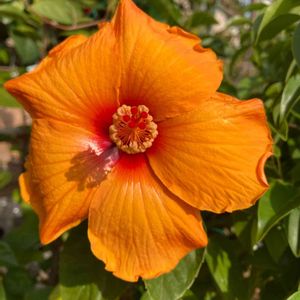今朝、オレンジ色のハイビスカスが今年初咲き🧡 うちに来て3年め、ニ株植えの鉢を今年一株ずつに植替えました。咲いてくれて嬉しい!
