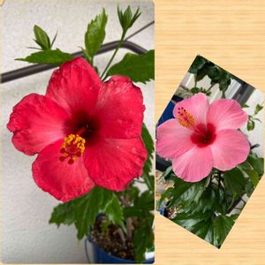 今日、咲いたハイビスカス レッド❤️フラミンゴ🦩 オレンジ🍊フラミンゴ🦩