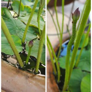 お晩です⭐️ 百均バケツのハス🌸綿棒みたいな可愛い花芽が上がって来ました😊