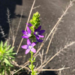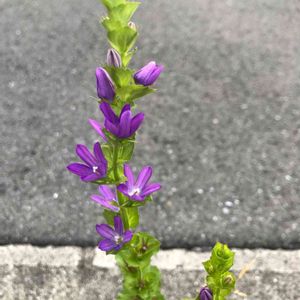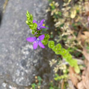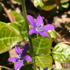 痩せっぽちでノッポのキキョウソウ。 今にも折れそうにススッと伸びてます。 バス通りのヒラドツツジの植え込みの陰で 何本も可憐な花を咲かせていました。