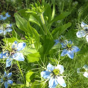 おはようございます😄 今日は雨あがり☔の ニゲラさんを 5枚 picしてあげました(*^^*)💙 神秘感があって 幻想的な姿を持つ 青い植物が 雨の雫を纏って輝いてる姿は 本当に美しいと思います👀〜💙 毎年の こぼれ種芽🌱に感謝です🤗♪♬