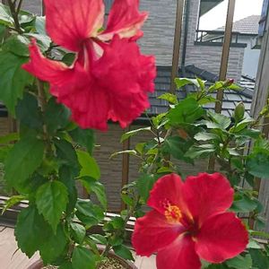 おはようございます😄… ベランダで 育ててる2年目の ハイビスカス🌺さんです😉… フラミンゴさんも 咲きました😘… やっぱり夏の花🌺は いいなです😆💕… 寒さに弱いので ムクゲみたいに地植えで 越冬が出来たらって思います😅💦…