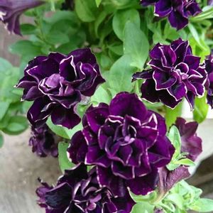 おはようございます😄… 玄関周りで育ててるペチュニア(華みやび)さんです😉… 黒真珠とか ありますが 私にはどう違うか わかりません😅💦… でも 可愛いい花です🤤~💕