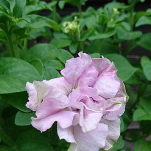 おはようございます😄… 鉢植えの ペチュニア(F1ダブルカスケードミスト)さんです😉… 花が大きくて直径 10㎝あります🤤… 切り戻ししてから 約1ヶ月半で ようやく咲きました😙💕… けっこう茎も太くなって モリモリになる予感です😊…