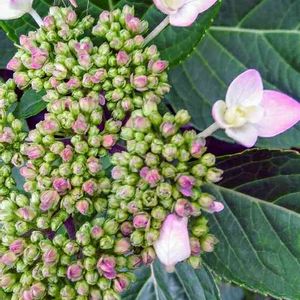 紫陽花が色づき始めました。 去年お隣さんから頂いた枝を挿し木したもの。紫陽花の挿し木成功率はすごく高いですね。 品種名を聞いたのだけど、忘れてしまいました。どなたかわかる方いらっしゃいますか?