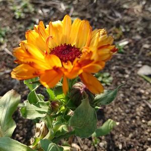 おはようございます😄… my花壇で 11月から頑張ってる カレンジュラ(ブロンズビューティー)さんです😉… 他の植物が寒波で枯れてしまう中で 枯れそうになりながらも頑張ってます😋💕… もう少しで 隣にカラーさんや エキナセアさんも咲くと思うので頑張ってほしいです💪…