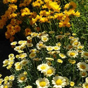 おはようございます😄… 庭の マーガレット& コレオプシスさんです😉… 花が いっぱいだと幸せですね🤗💕…