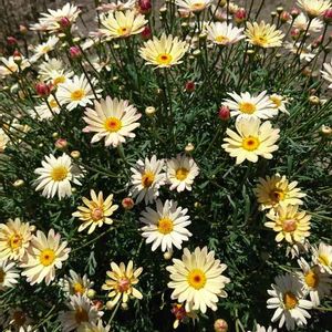 こんにちは😄… 庭のマーガレット(ラリータ)さんです✨… 今 花殻摘みをしてあげました😊… この子も お迎えした時より いっぱい広がって嬉しいです😙💕…