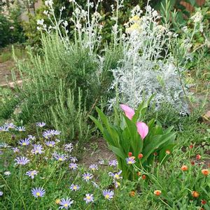 おはようございます😄… my花壇の2種類の ラベンダーさんです😉… デンタータと シルバーリーフが美しい シルバーサンドが咲き乱れて いい香りが漂います🤤… やっぱり 自然体って いいなです🤗💕…