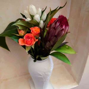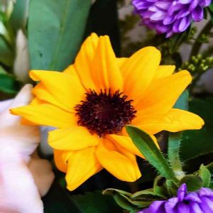 昨日届いたお花サブスクのブーケ💐 雨ばかりの日々で沈みがちな心を優しく包んでくれる色たち💟