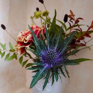 大好きな色合いのエリンジューム💙 お花屋さんの店先に売っていた小さなブーケに入っていました💐 このカーネーションの色合いも秋らしくて好きです💕
