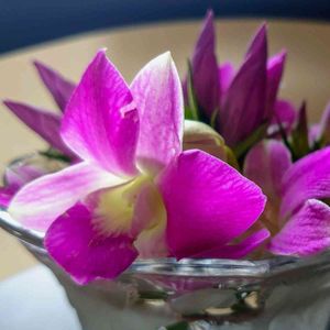 デンファレとリンドウを水に浮かべるように飾ってみました💟