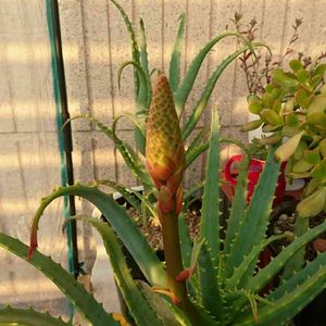 10月末から身内の不幸が続き、更新をおやすみしておりました。栃木よりこんにちは😃 沈みがちな気分でしたが、キダチアロエの花が伸びてきていてほっこりしたので投稿しました(*´ー`*) この株は2年前にも蕾をつけてくれたのですが、引っ越し時期と重なり、環境の急変に耐えきれず途中で落下( ;∀;)💦 去年は胴切りし、植え替えをしたため蕾自体がつかないでシーズンを終えました(*´ー`*) 今年は霜が降りるギリギリまで動かさず、移動後も外に置いていた時と変わらない日照条件にした簡易温室に入れた結果、2年前の時より順調に伸びてきています☺️ 今年は咲くといいな➰🎵