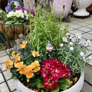 玄関前の寄せ植え♪ プリムラジュリアンを沢山お迎えしたので、また寄せ植え作りました🤗 何かが足りません!😅