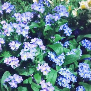 ウチの忘れな草ではありません お外にたくさん可愛らしいです 薄暗いですけど📸🙋♀️しました 💙💜💙💜🌱