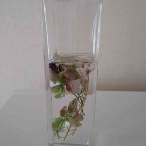 初ハーバリウム💚 わが家のドライフラワー達で初ハーバリウム😅 思ったより難しいもんだね💦 ドバドバってハーバリウムオイル流し込んだら並べた花は移動するんだね…当たり前か…