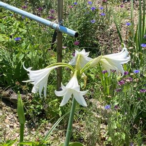 2021.5.31 朝の散歩。近くの家庭菜園で。 テッポウユリからハマユウに訂正しました2021.6.23 さらに詳しくアフリカハマユウと教えていただきました 2021.6.24
