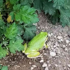早朝のカエル🐸さん もうすぐ梅雨入りかしら? ヨモギのそばで まだ眠そうでした 4時前のだものね