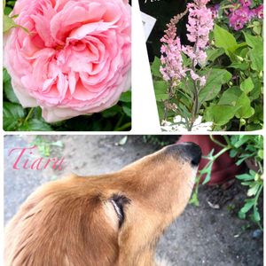 💚2回めの登場💚 昨日の我が家のetc ピエールの一番花、開ききりました。 このあと切って抹茶茶碗みたいのに入れて飾りました。 リナリアは、ピンクと紫の2色咲いてくれています。 我が家の愛犬ダックスのティアラ 外に出したら、こんなしぐさをしたので 思わず撮りました〜😊 ティアラは、GS2回めの登場です🐶