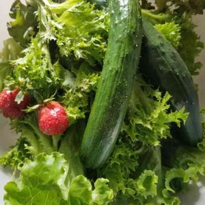 朝食にするための 今朝の収穫🥒🌿