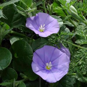 お出かけ先で❗ 雨上がりの花壇 たった一輪、薄紫の花が咲いていました💜💜💜 アサガオかと思ったらコンボルブルスみたいです😅