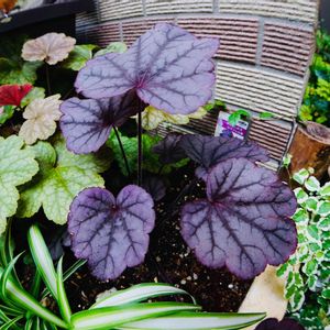 ☘️ヒューケラ5種🍁 左上リィプスティック 左下プラムカスケード 右上オブシディアン 右中チェリーコーラ 右下エレクトラ みんな元気になってきました(๑•̀⌄ー́๑)b