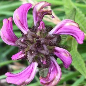 こんばんは⭐️ 野草の( ◦⃝⃚⃙⃘⃙⃚⃙⃚⃙⃘⃑︎д◦⃝⃚⃙⃘⃙⃐︎ )∕︎⌚︎時間だよ! トモエシオガマ 山の上でヒメオドリコソウに似たお花を発見👀‼️ プロペラみたいに花をつけてる 初めて見たお花🌸 半寄生植物らしい シオガマギクに似ているが こちらは茎の先に花が付く シオガマギクは茎の途中にも花が付く 咲き始めで後から茎の途中からお花が咲くかもだけど😅
