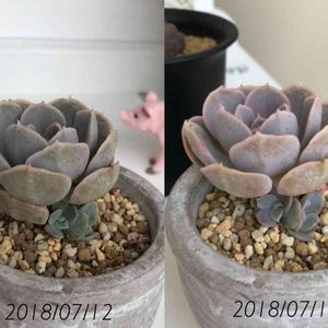1週間も経ってないのに、こんなに変化が! 我が家にきて、植えかえて最初2日ぐらい日陰、その後2日間ぐらい遮光したひなたに置いたら、あっという間にピンク色に。しかも少し成長したような感じ。 水は怖くてあげてません。 この子は強いのかな? このままそっとしておくでよいのかな。 ピンク色いいな😊