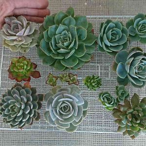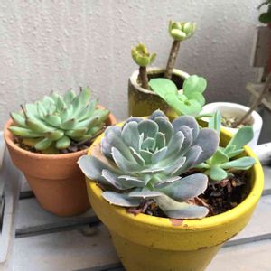 おはようございます☔ 暮れにポチった子達が成長しました🎵 ブルーアップルの成長が一番早いかなぁ⁉ 株下で赤ちゃん達もいっぱい💕 鉢が狭そうだけど秋まで頑張って👊😆🎵