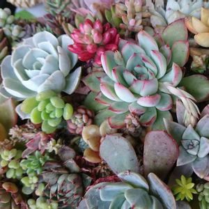 今日の多肉事✨ 昨日入荷した、トップシータービー、ルヨンニー、謎エケベリアと、オリビアで寄せ植えしました😉 隙間に、パープルなんとか(忘れちゃいました💦)と、セダムローズを☺️ セダム以外は、全部ダイソーです😆👍 そうそう、さすがというか、繁殖力の強いトップシータービーさんですね。 植え替え時に、土を落としたら既に子株が3個も隠れてました😲 あと、近くにカインズさんができたので覗きに行ったら、前から欲しかったルビーネックレスさんがいたので、お迎えしました。 とりあえず、土とポットの入れ替えを。 ちょっと元気がないですが、モリモリ増えてくれること願います🥰 ルビネさんで、ネックレスの日参加させて下さ~い🖐️🖐️