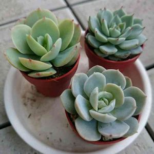 3個で500円均一のチビ多肉たち。 真冬に購入した唯一の多肉。 水やりで少しふっくらしました。