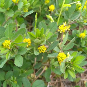 道端にコメツブウマゴヤシが咲いていました。黄色い小さな丸い花です。 コメツブウマゴヤシ マメ科 ウマゴヤシ属 ご意見の結果、コメツブツメクサに変更しました。 似たものにコメツブツメクサがあます。コメツブツメクサは、3から4ミリで沢山の花が集まって咲くとの事で、違うかなと思いました。