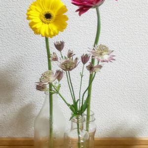 近所のスーパーでお花一輪プレゼントをやっていたので 頂きました😊💐 ガーベラも種類が豊富で可愛いですね〜💕