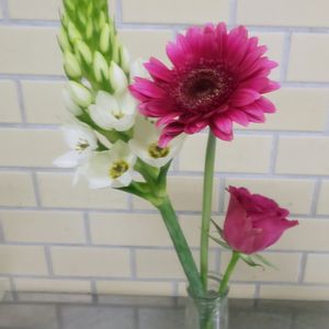 371花目✨ ガーベラ レンブラントを入手 赤紫のグラデーションが大人な感じ オーニソガラムも少しずつ 白い花を咲かせています🍀 4/13@いつもの水屋