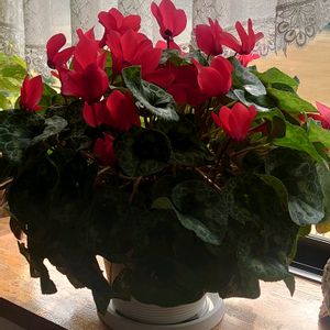 シクラメンさんがまた満開に🥰 アジサイさんとのコラボも珍しい💙❤️
