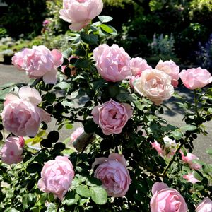 ①② シャンテロゼミサト 先日の雨で ほぼ真っ茶になって 残ったお花です ③ 挿し木 地植えのクロード モネ 親より大きくなったみたい ④⑤ シャドウ オブザ ムーン 大好きな色💜 ちょっと枝が暴れまくって 全体が写せない〜