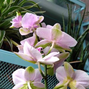 かなり値下げのファレノプシス🌸 花の終わりになってきてると思うが… 裏側の色がきれいでこちらを表にして楽しめる🤩 よく見ると一段下に花茎?? また咲いてくれるのかなぁ😳