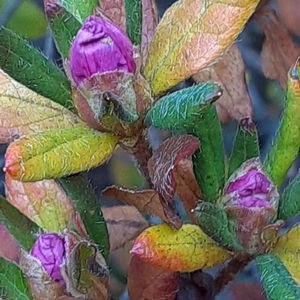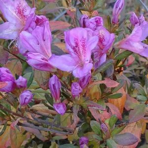 番外編(夫撮影) 夫の実家で咲いているツツジ 蕾がいっぱい、花は次から次へと咲いているし、それでいて葉は紅葉しているし……… 来春ど〜なるの?