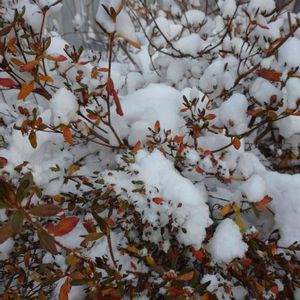 番外編 夫の実家のツツジのその後 雪が積もりました