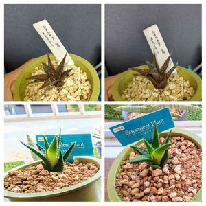 ほぼ1年後の姿シリーズ99 ※最近比較した子達は除外 ハオルチアの何か スカブラって仮で与えている。 ダイソー産。 ダイソー産のハオルチアって珍しいなぁと自然と手が伸びてカゴの中へ。 下:去年11月 上:最近 葉が少し増えたけど、成長遅い。 色は今の黒のままでOK。 ハオルチアの小さい子たちは成長ロードに乗るのが難しいのかなぁ.。oஇ