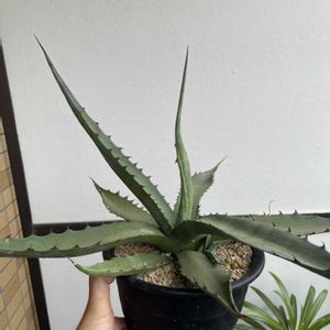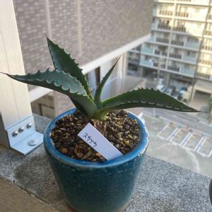 先日の外れちゃった子株のおかあさん。 ブルーグレーの葉色と鋭いトゲの持ち主。 2センチ以上あるしっかりとしたトゲ。 間違っても刺さってほしくない。 この方はどれくらいまで大きくなるのかなぁ。 もっともっとオトコマエになってほしい。