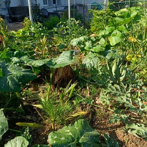 4月頃、庭に花壇もどきを作りコンポストの土と腐葉土を混ぜて、そこにアガベ、シュロ地植えしました。 それから数カ月が経ちコンポストの中に入っていたカボチャやらトマトの種?が次々と発芽をし、今大変なことになっております。😅 抜くのも可哀想なので放置しています。