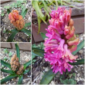 暖かい日が続いて♨️花壇に植えておいたよりどり色も不明の秋植え球根ヒアシンス💗🧡が咲き始めたけど同じ色ばかりでがっかり😅 陽当たりのいい場所から咲いて🎉残りはまだ固い蕾達💦 🏷️あっ火曜日に参加させて頂きます🥰