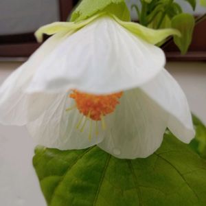 アブチロンホワイトキング 小さな苗を買い地植えにして29センチの株に5センチくらいのスカートを広げたような花を咲かせてます🤍〜💛