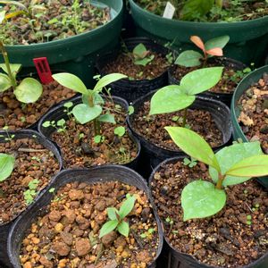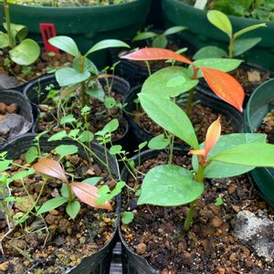 マンゴスチン実生。 初期のva菌の回りが生育を左右するので苗を買うよりは自分で実生した方が結果的に大きな株になります。 ちなみにこの株達はタイ産マンゴスチンをメルカリで購入して蒔いたものになります。