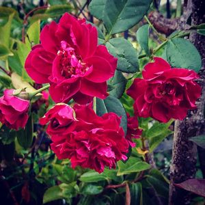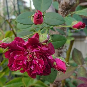 薔薇🌹カーディナルヒューム 昨日投稿した時は一つだけの開花でしたが他の蕾も咲きました✨ ひと枝に6個咲いてます🙌❣️