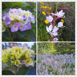 オープンガーデンを見に行った帰り、公園によりお花を見てきました アナベルが未だグリーンだったけど爽やかで素敵 クレマチスも綺麗に咲いていました 右上のアジサイの色が。あまり見たことのない色でとっても素敵でした❇️