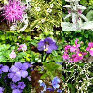 こんな花咲いてます ペンステモン・矢車草・ハナシノブ・ツリージャーマンダー・リシマキア・ネモヒィラ 柏葉紫陽花・等など