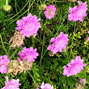 小さな庭で咲いてる アンチューサー 白蝶草・ギボウシの花・ゲラニュウム・オルレア・ヒメイワダレソウ・バーバスカム・コンブルブルス・等など