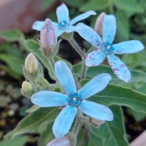 ブルースター💠 私の大好きな花です あの、震災の時は流されてしまったけど、種が助かってて、なんとか子孫が生きてます\(^-^)/ 実は去年の冬にもダメにしてしまいましたが、採ってた種でd(^-^) 春に蒔いたものが花を咲かせてくれました❤️